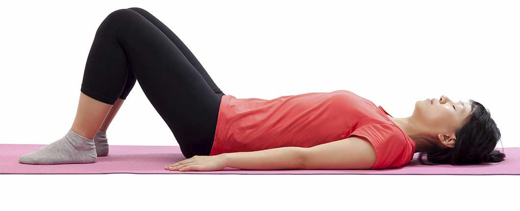 روی زمین دراز بکشید، زانوها را خم کنید و کف پاها را روی زمین بگذارید.